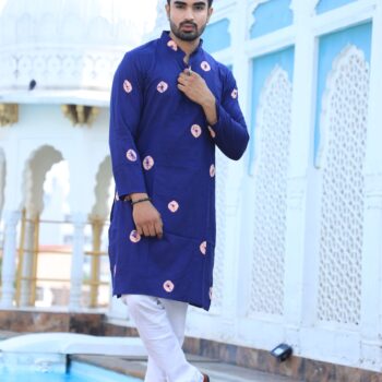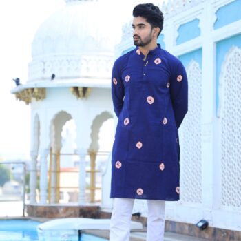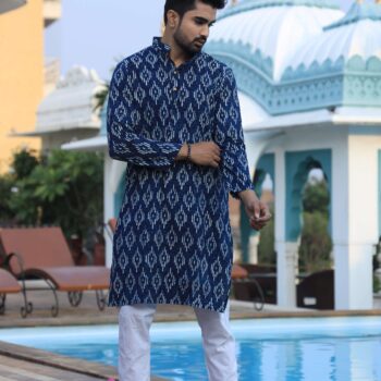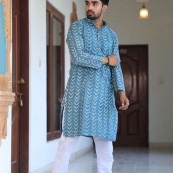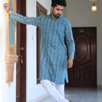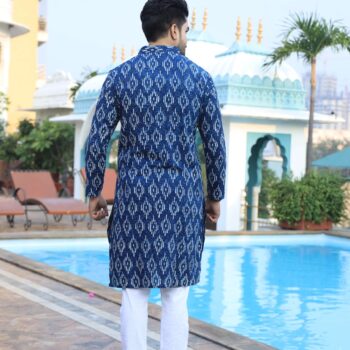 Men’s Blue Printed Cotton Kurta Pyjama Set | Traditional Festive & Wedding Wear