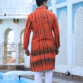 Men’s Orange Tie-Dye Cotton Kurta Pyjama Set | Traditional Festive & Wedding Wear