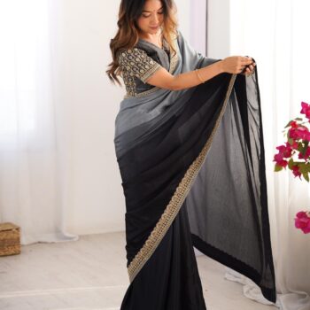 Women’s Classic Black Shimmer Saree with All-Over Sequin Embellished Blouse Piece