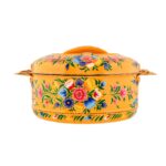 Mustard Yellow Hand-Painted Aluminium Tea Kettle Set with 6 Glass Tea Cups and Wooden Serving Cart | Artisan Tea Set