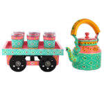 Mustard Yellow Hand-Painted Aluminium Tea Kettle Set with 6 Glass Tea Cups and Wooden Serving Cart | Artisan Tea Set ₹7,000.00 Original price was: ₹7,000.00.₹3,249.00Current price is: ₹3,249.00. Inc. All Taxes
