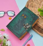 vintage handmade leather journal. Crafted with genuine leather, it radiates authenticity and charm, perfect for those who appreciate classic craftsmanship. The premium antique lock closure adds a touch of elegance and security, ensuring your thoughts and memories are safeguarded within its pages. Inside, you’ll discover 200 brown handmade pages, providing ample space for your musings, sketches, and stories to unfold. Whether it’s for journaling, sketching, or planning, this versatile journal is a timeless companion for your creative endeavors. Treat yourself or a loved one to this exquisite piece, a celebration of tradition and creativity