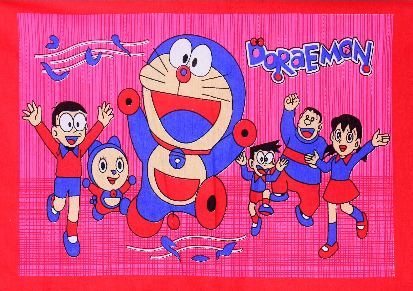 Doraemon Printed Cotton Double Bed Bedsheet With 2 Pillow Covers For Kids