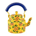 Be the first to review “Hand-Painted Aluminium Tea Kettle | Mustard Yellow & Blue Handle 750 ml Art Serveware” Cancel reply