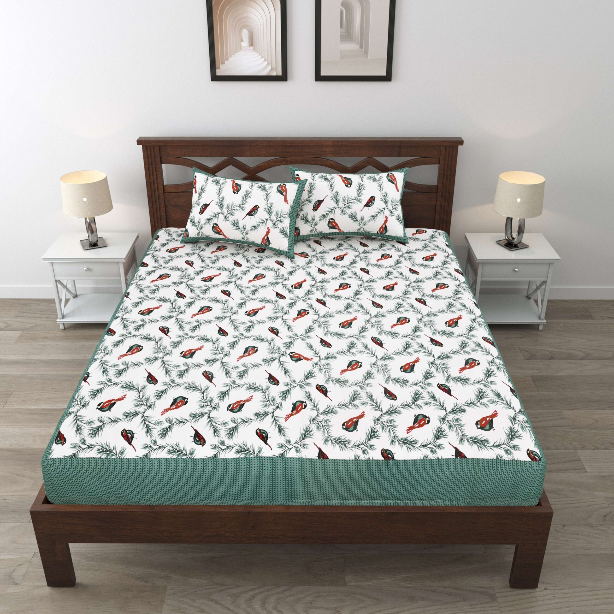 The elegant print brings a lively and refreshing touch to your room. Whether you’re refreshing your space or preparing for guests, this bedsheet blends functionality with refined aesthetics.