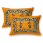 Jaipuri Floral Printed 100% Pure Cotton Double Bedsheet With Two Pillow Cover (Orange)