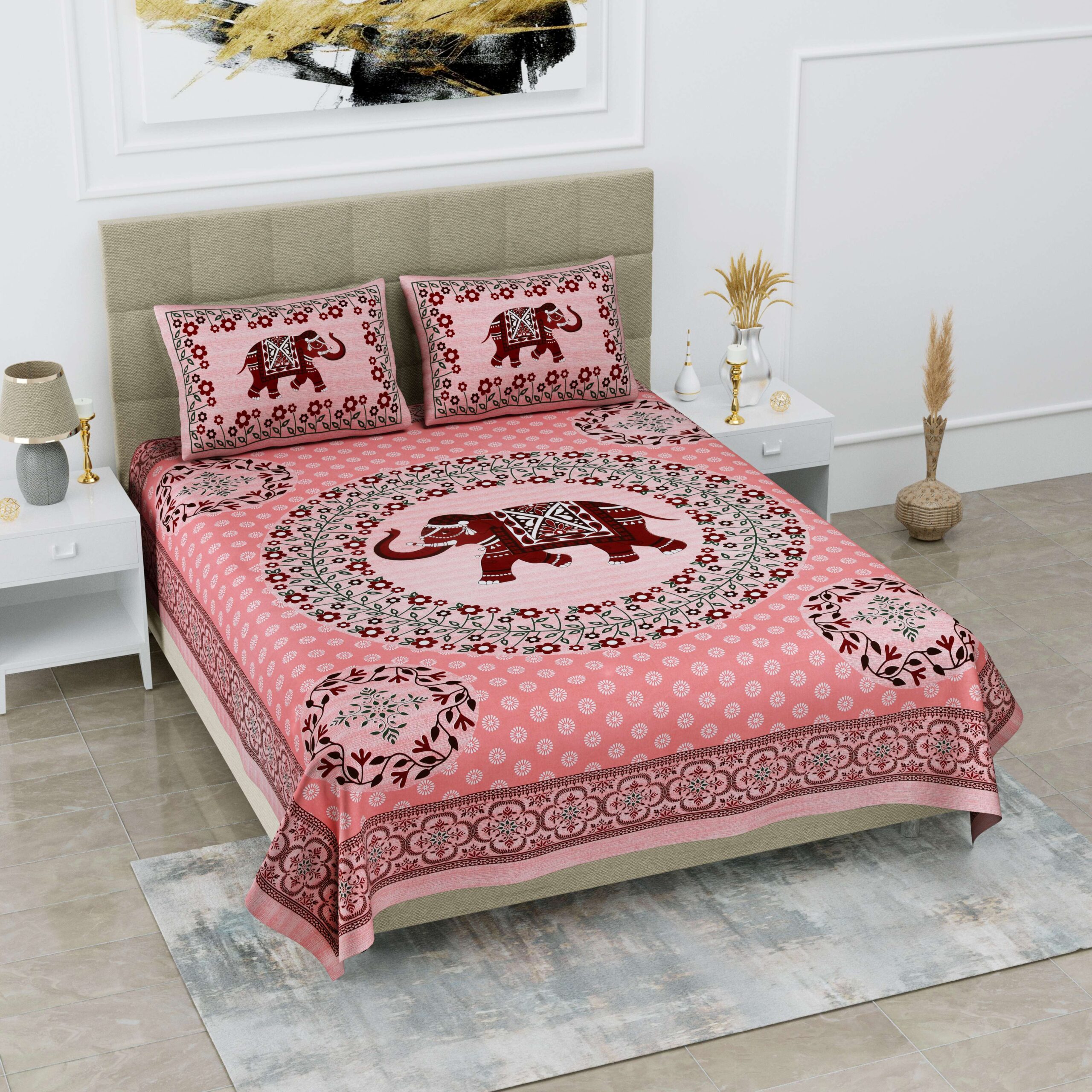 royal touch to your bedroom with this Rajasthani Jaipuri Sanganeri Bedsheet. Crafted from soft cotton, it features vibrant hand block prints inspired by Jaipur?s rich heritage. Comfortable, durable, and beautifully designed ? this bedsheet comes with 2 matching pillow covers to complete the elegant look.