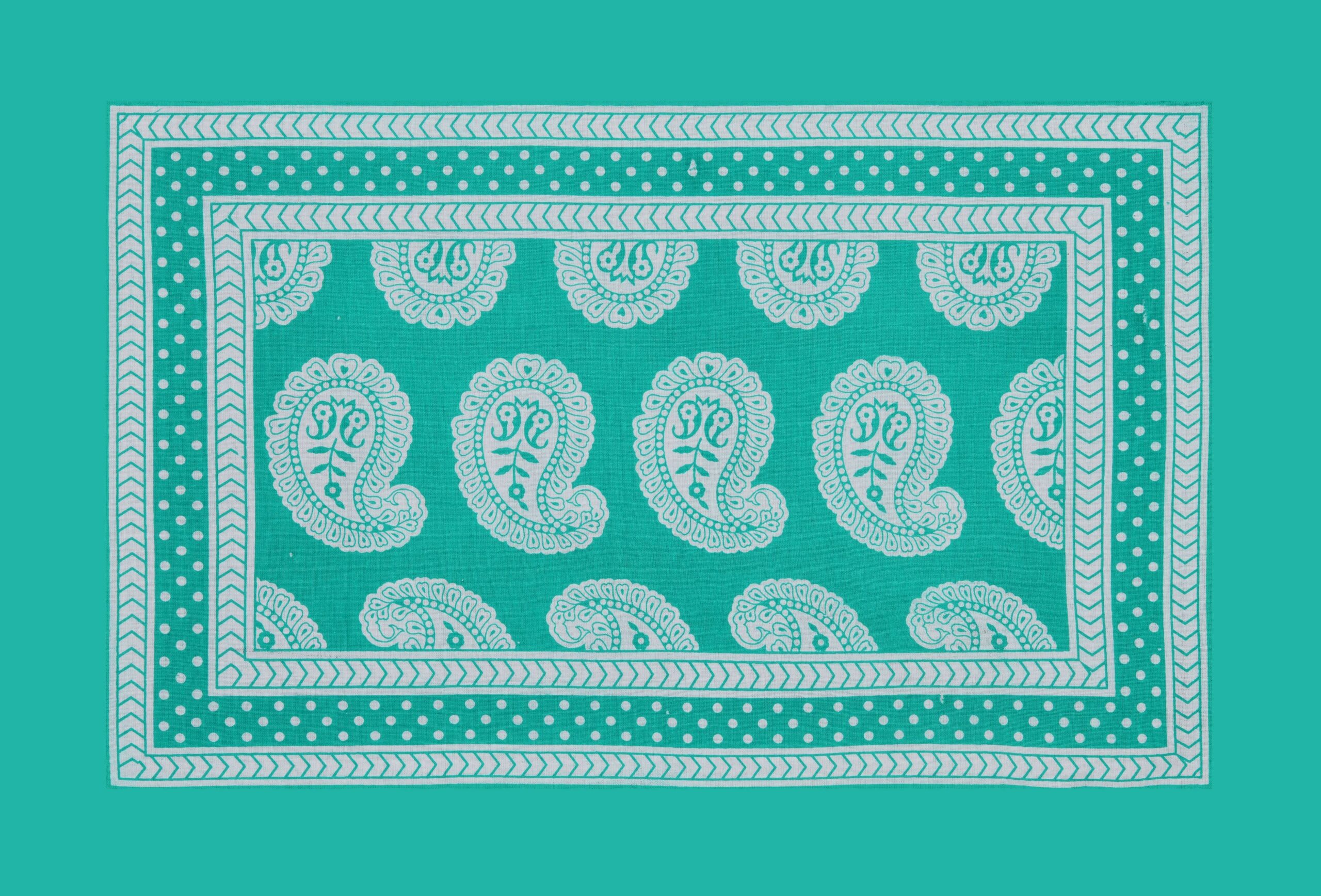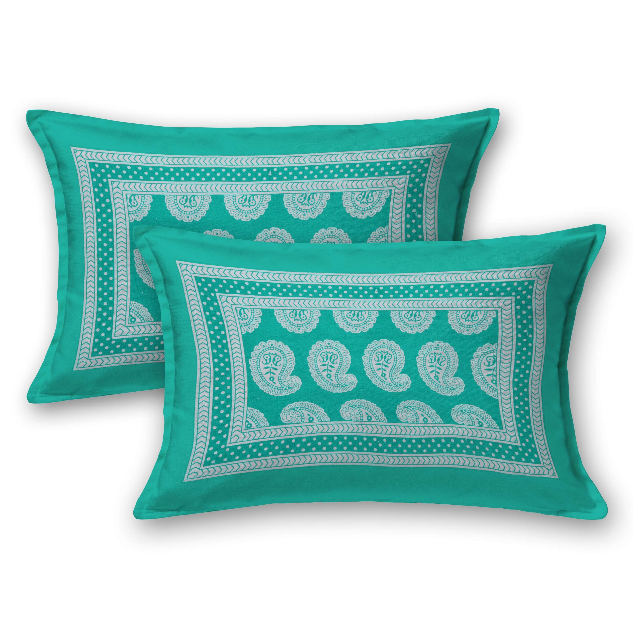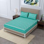 Home Bedsheets Jaipuri Stylish Block Printed Double Bed Bedsheet With Two Pillow Cover (Turquoise)