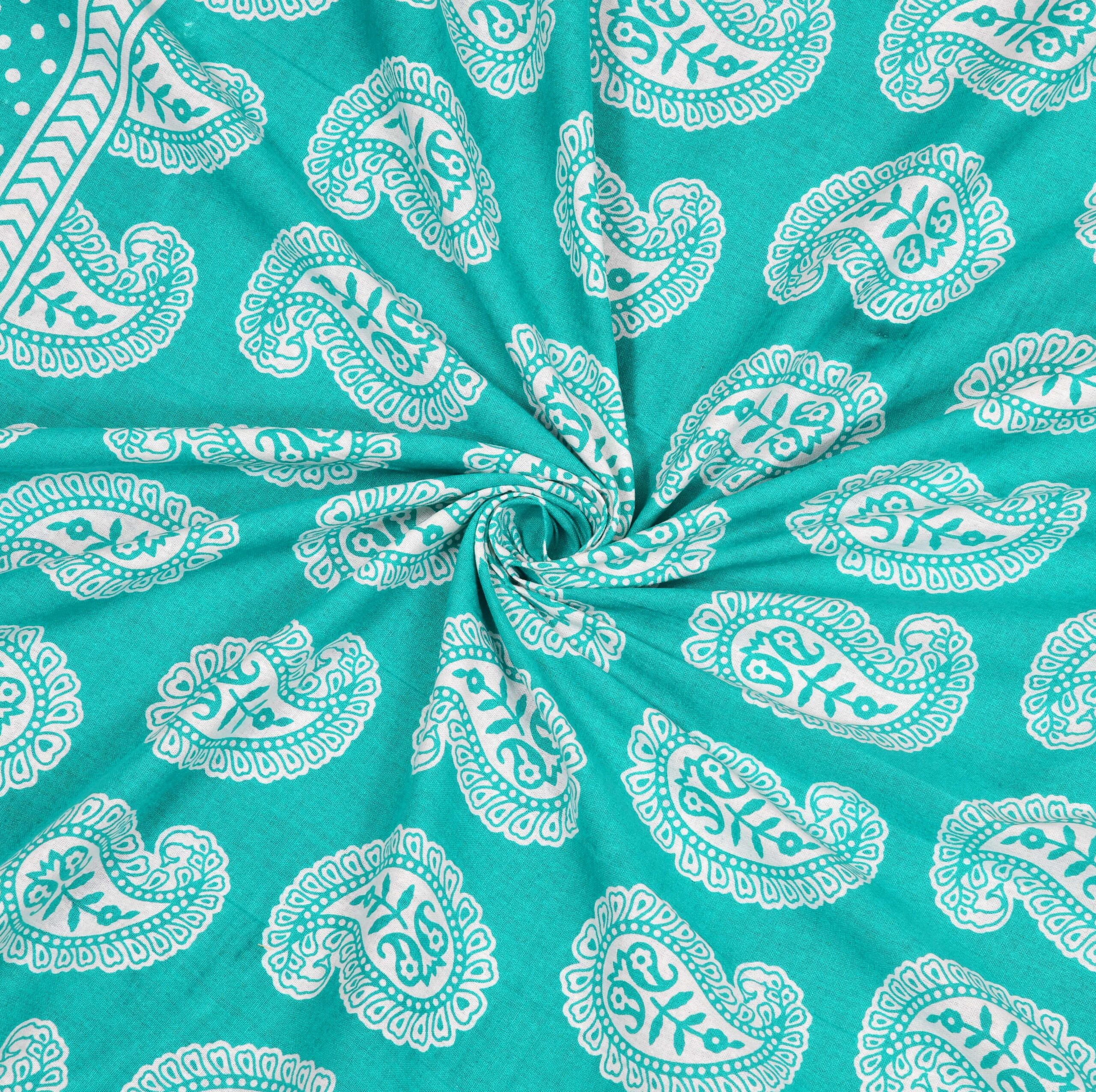 Jaipuri Stylish Block Printed Double Bed Bedsheet With Two Pillow Cover (Turquoise)