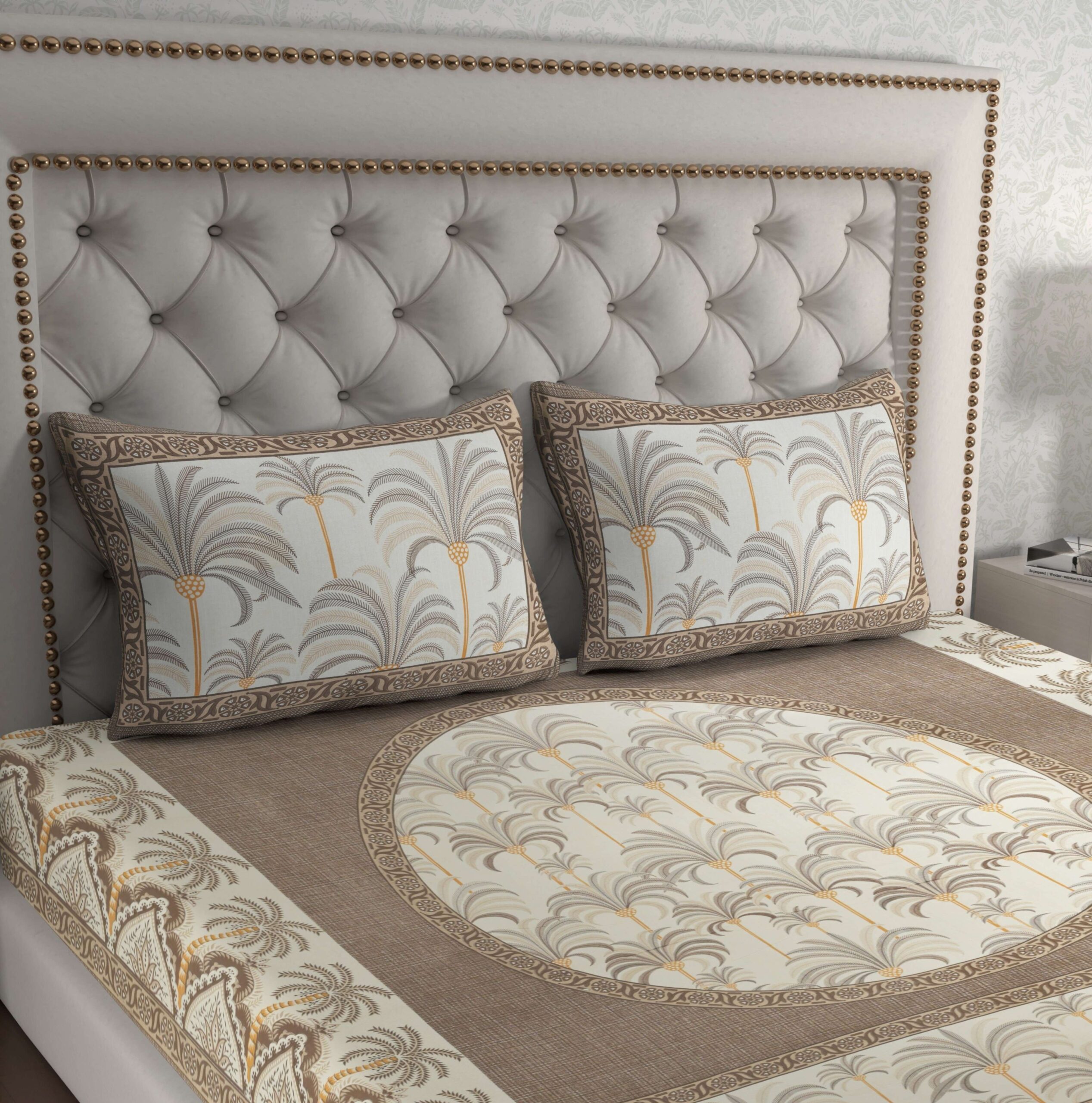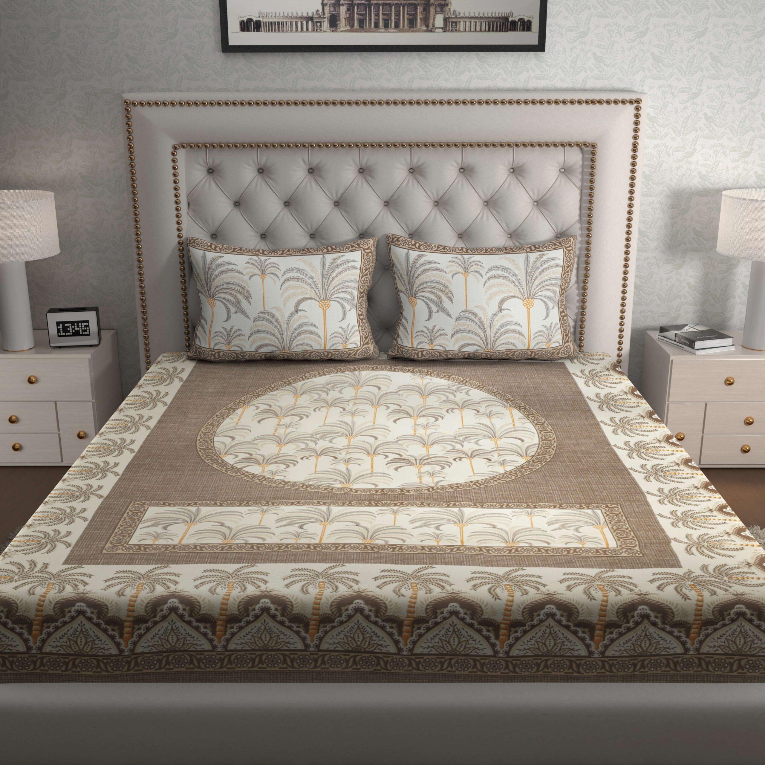 The elegant print creates a warm, inviting ambience. Whether you’re refreshing your space or preparing for guests, this bedsheet blends functionality with refined aesthetics.