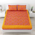 Jaipuri Stylish Floral Printed Double Bed Bedsheet With Two Pillow Cover (Yellow)