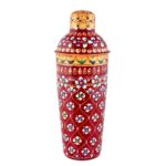 Aqua Blue & Pink Dual-Tone Hand-Painted Aluminium Tea Kettle Set with 6 Glass Cups and Wooden Serving Cart | Artistic Table Décor