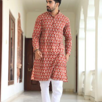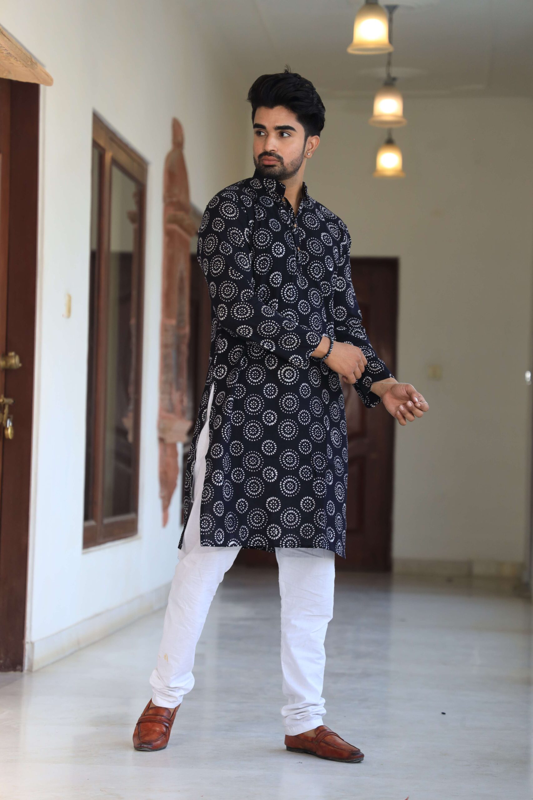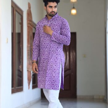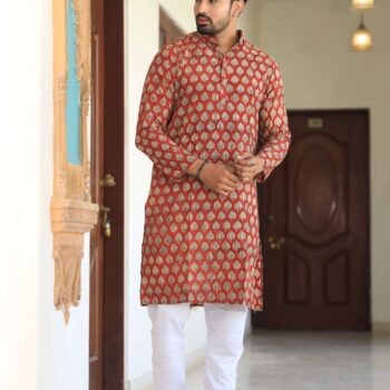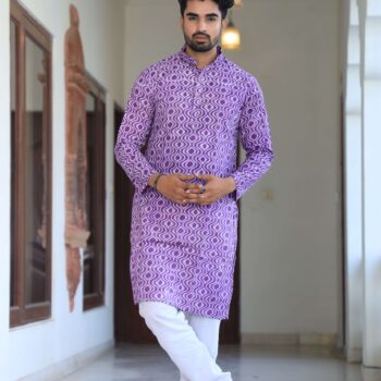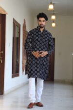Upgrade your ethnic wardrobe with this men’s black printed cotton kurta pyjama set. Made from premium-quality cotton, it offers a relaxed fit and all-day comfort while keeping your look refined and festive-ready.