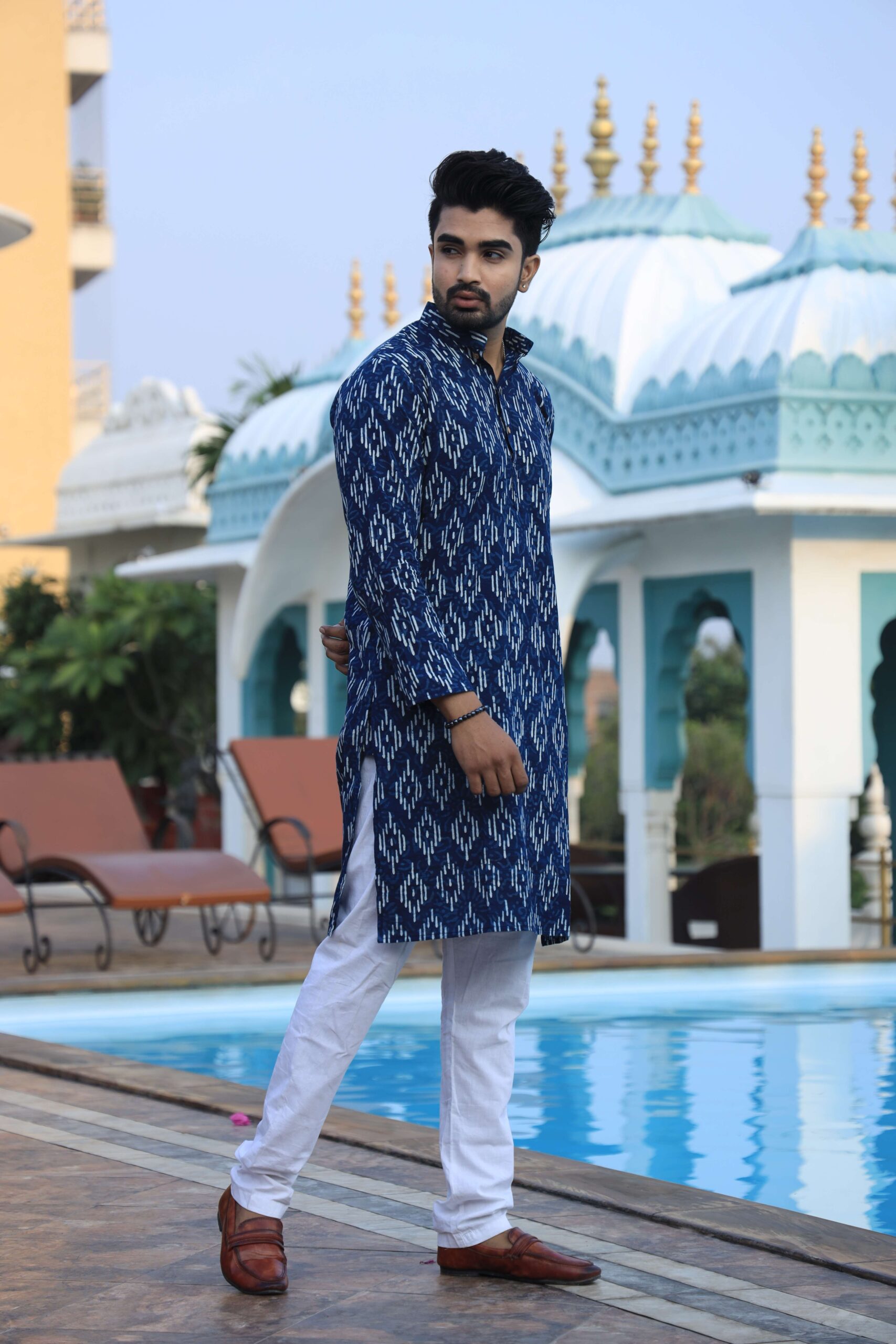 Be the first to review “Men’s Blue Printed Cotton Kurta Pyjama Set | Traditional Festive & Wedding Wear” Cancel reply