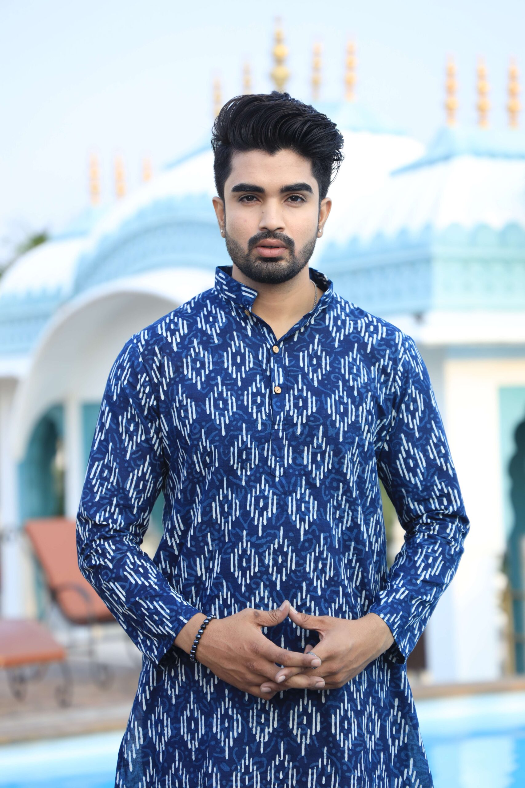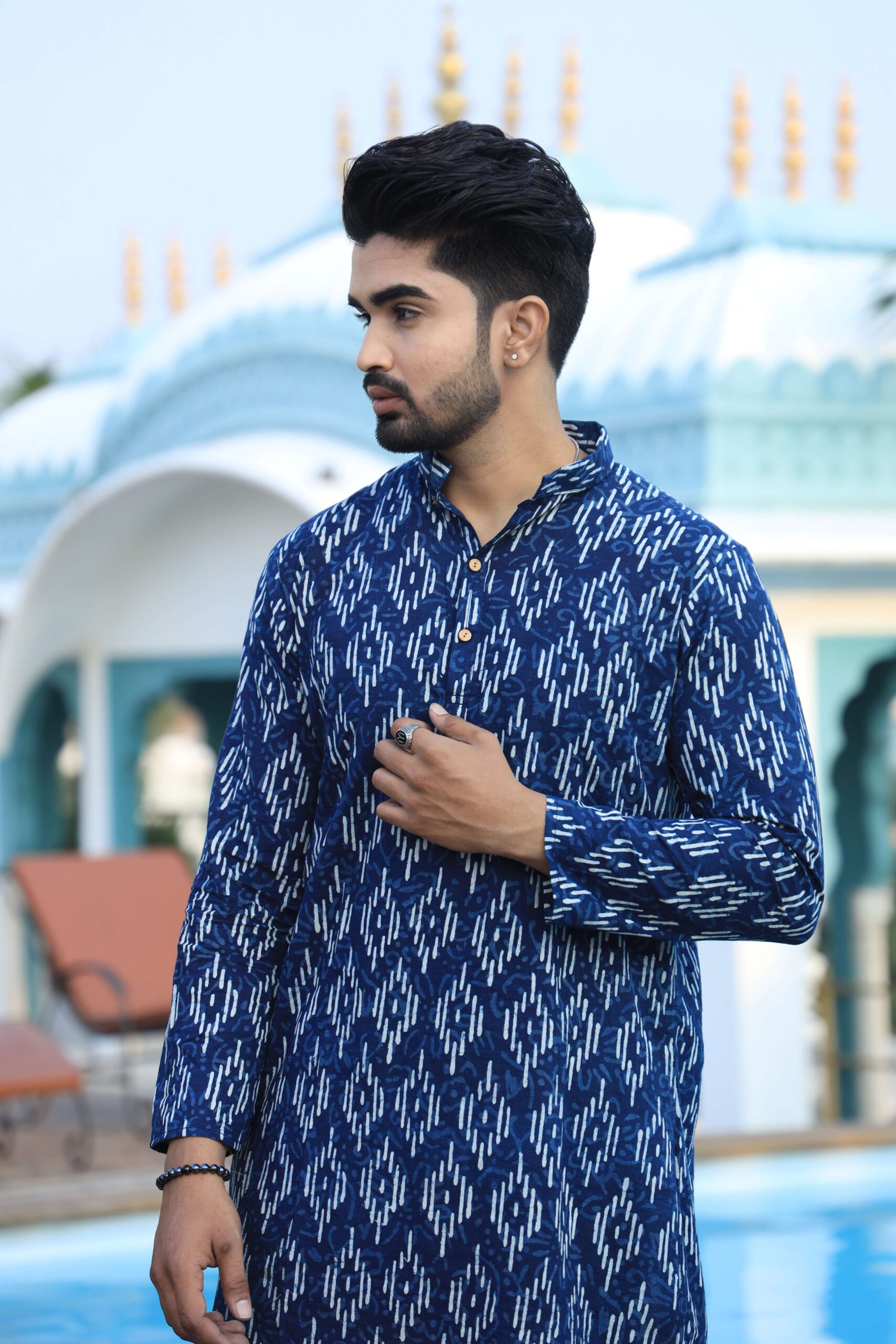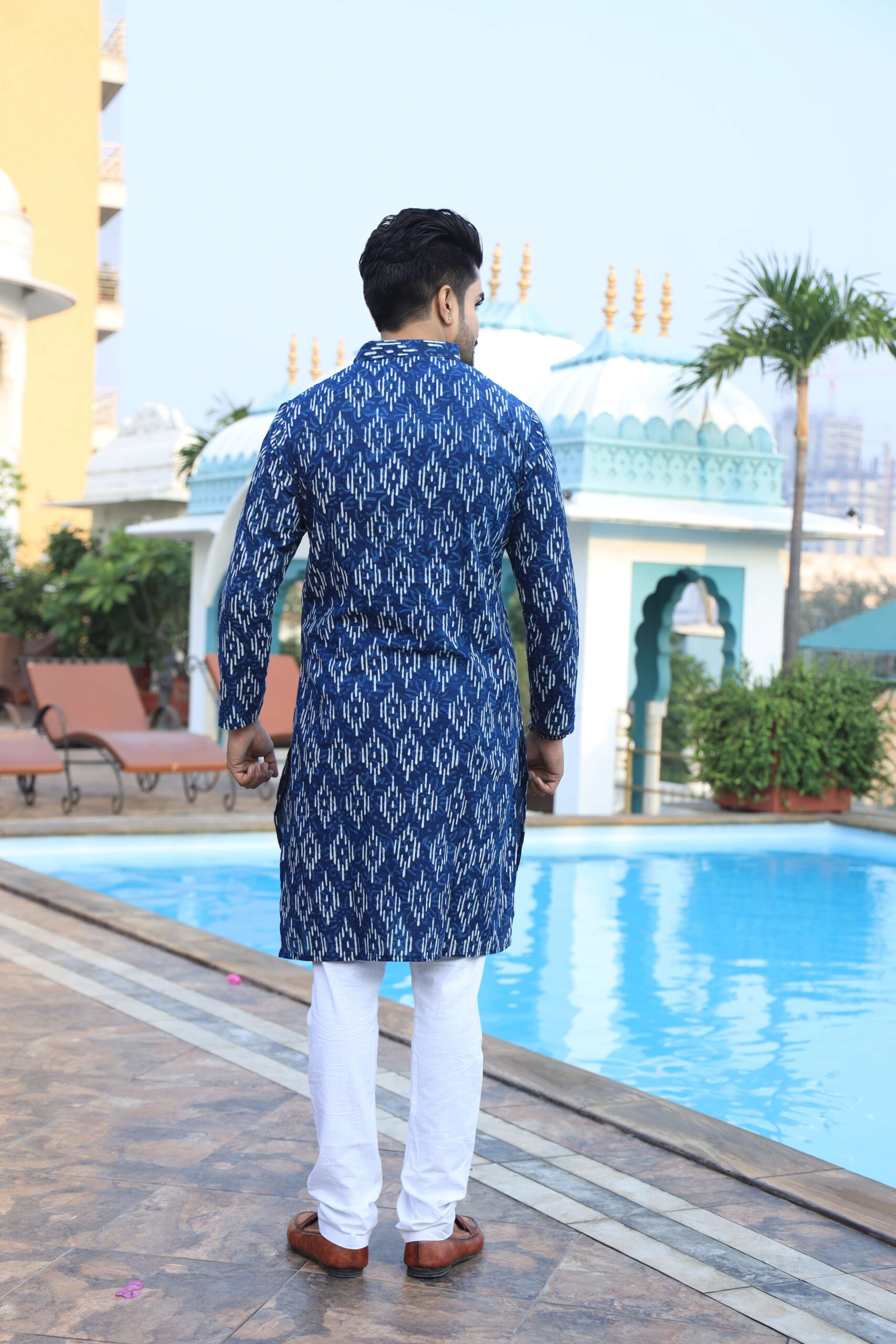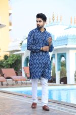 Be the first to review “Men’s Blue Printed Cotton Kurta Pyjama Set | Traditional Festive & Wedding Wear” Cancel reply
