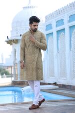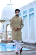 Style it with kolhapuris or mojaris and a classic watch to complete your traditional Indian look. This kurta pyjama set is a versatile addition to your festive and occasion wear collection.