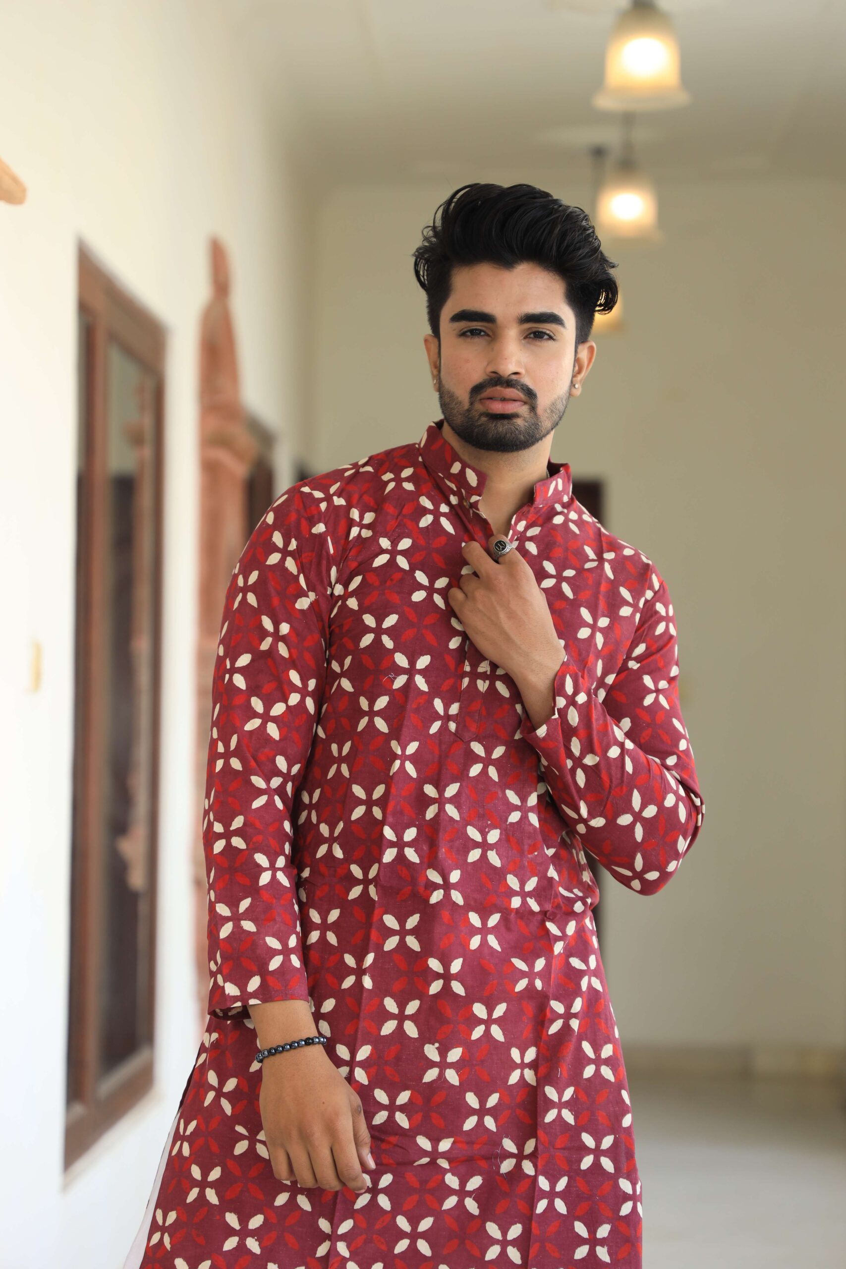 Be the first to review “Men’s Red Floral Printed Cotton Kurta Pyjama Set | Traditional Festive & Wedding Wear” Cancel reply