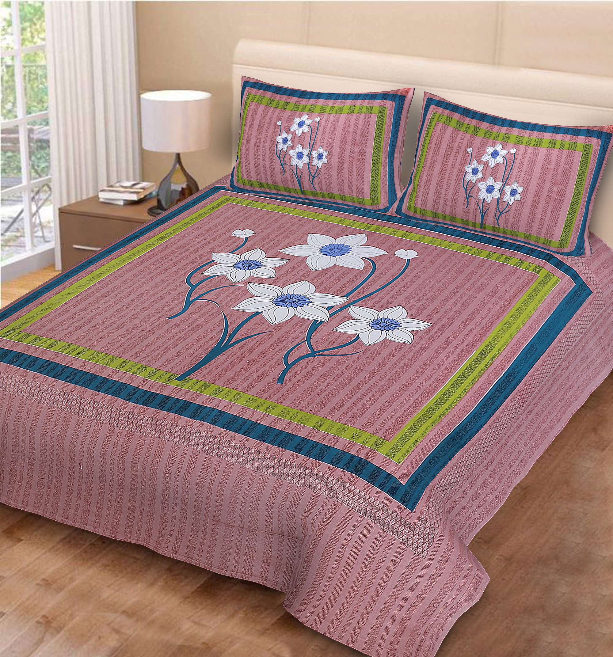 Rajasthani Jaipuri-Stylish Floral Print Double Bedsheet With Two Matching Pillow Covers.?