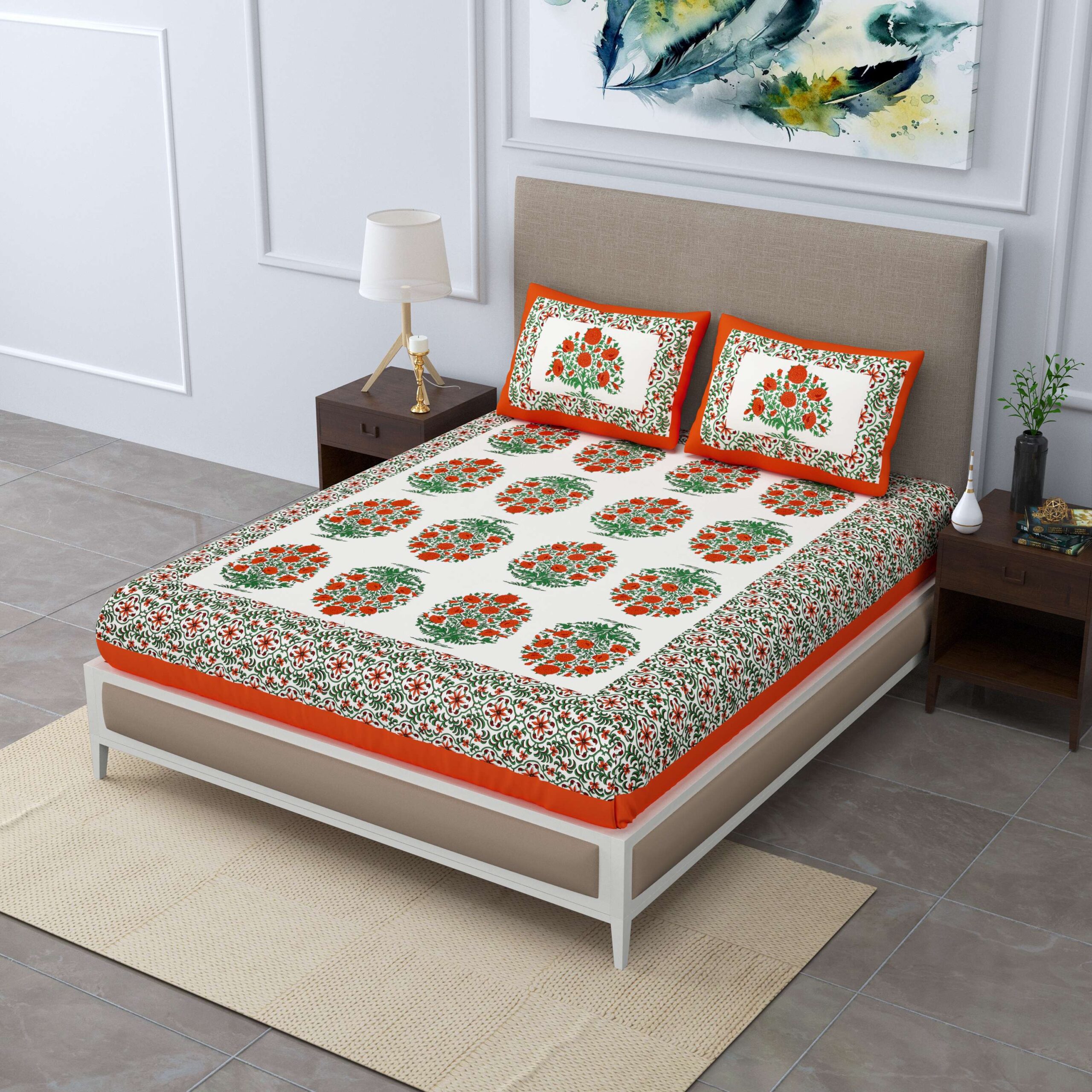 Rajasthani Jaipuri-Stylish Floral Printed Double Bedsheet With Two Pillow Covers