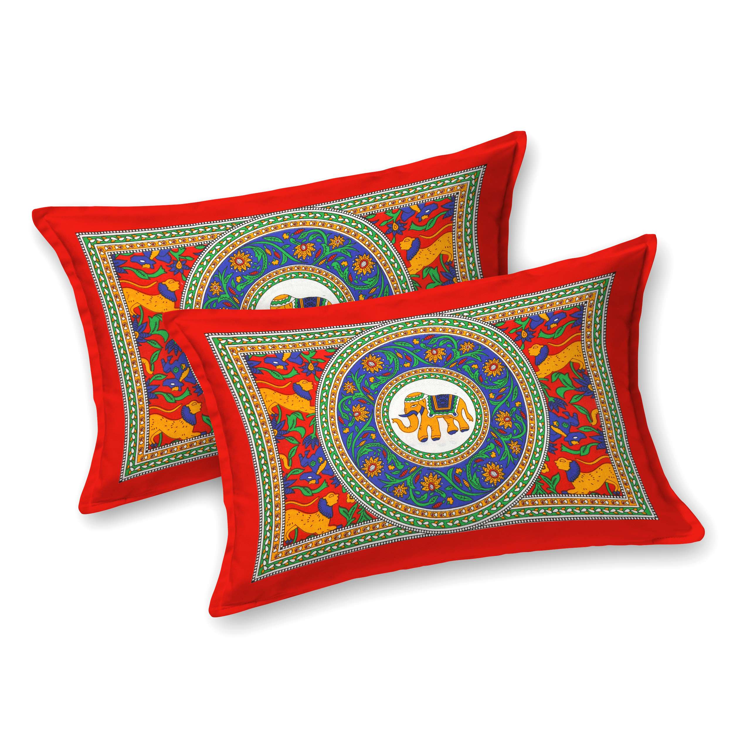 Enhance your bedroom d?cor with this Jaipuri Cotton Printed Double Bedsheet. Crafted from 100% pure cotton, it offers softness, breathability, and elegant traditional prints for a comfortable and stylish look. Comes with two matching pillow covers.