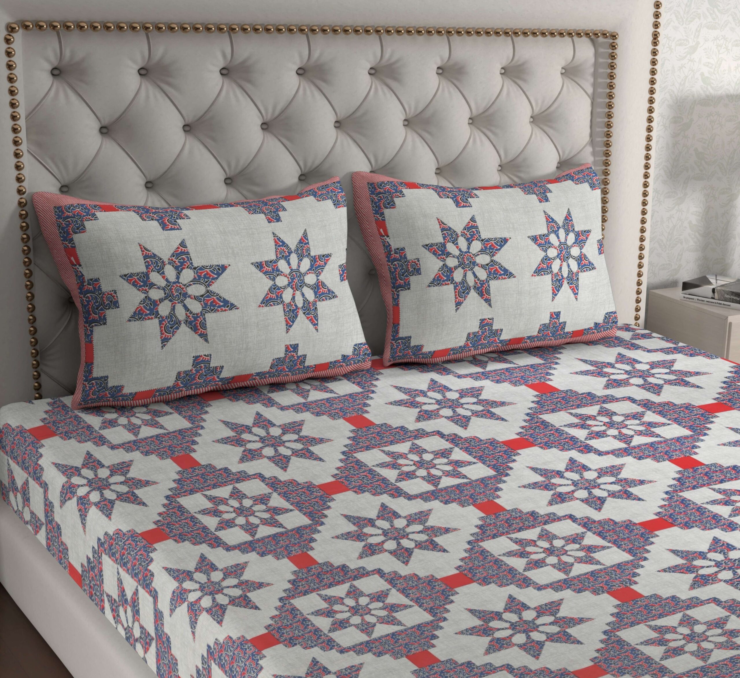 Bring home this finely woven cotton double bedsheet beautifully crafted with Jaipuri block print artistry. Its smooth texture provides all?season usability, making it a perfect choice for comfort?focused living.