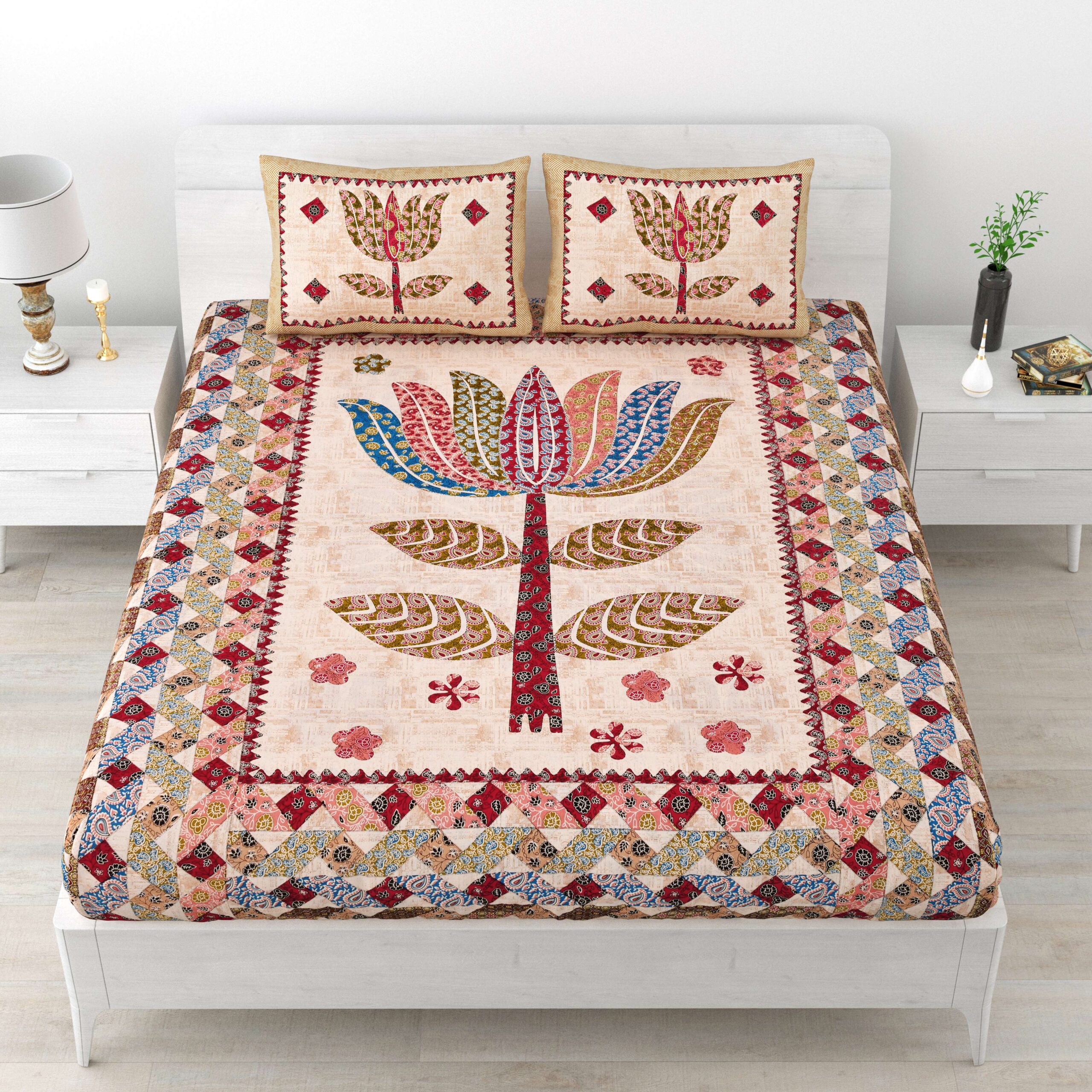 Bring home this heritage-inspired cotton double bedsheet beautifully crafted with traditional Indian motifs. Its smooth texture provides premium-quality finish ideal for gifting, making it a perfect choice for comfort?focused living.
