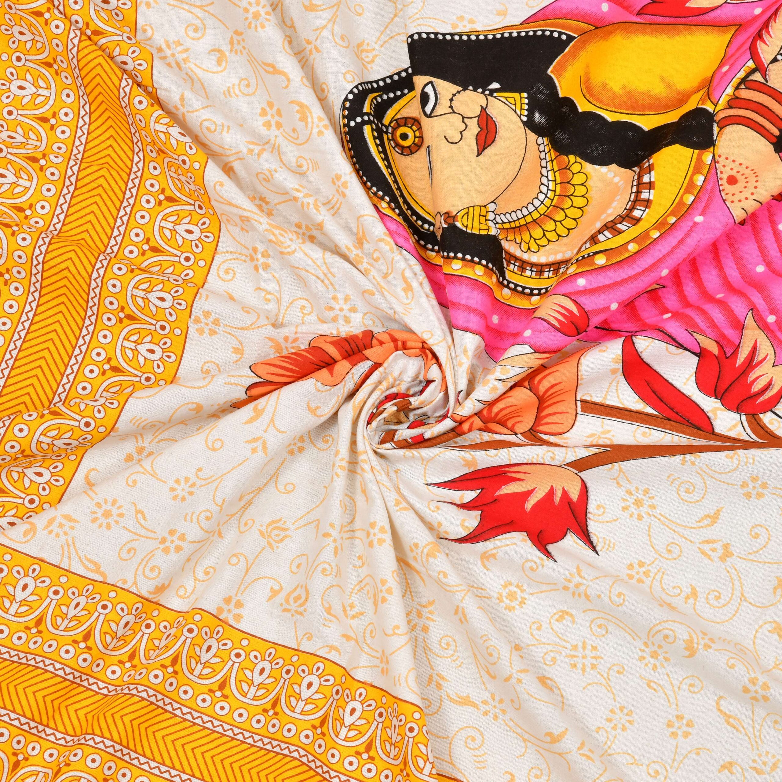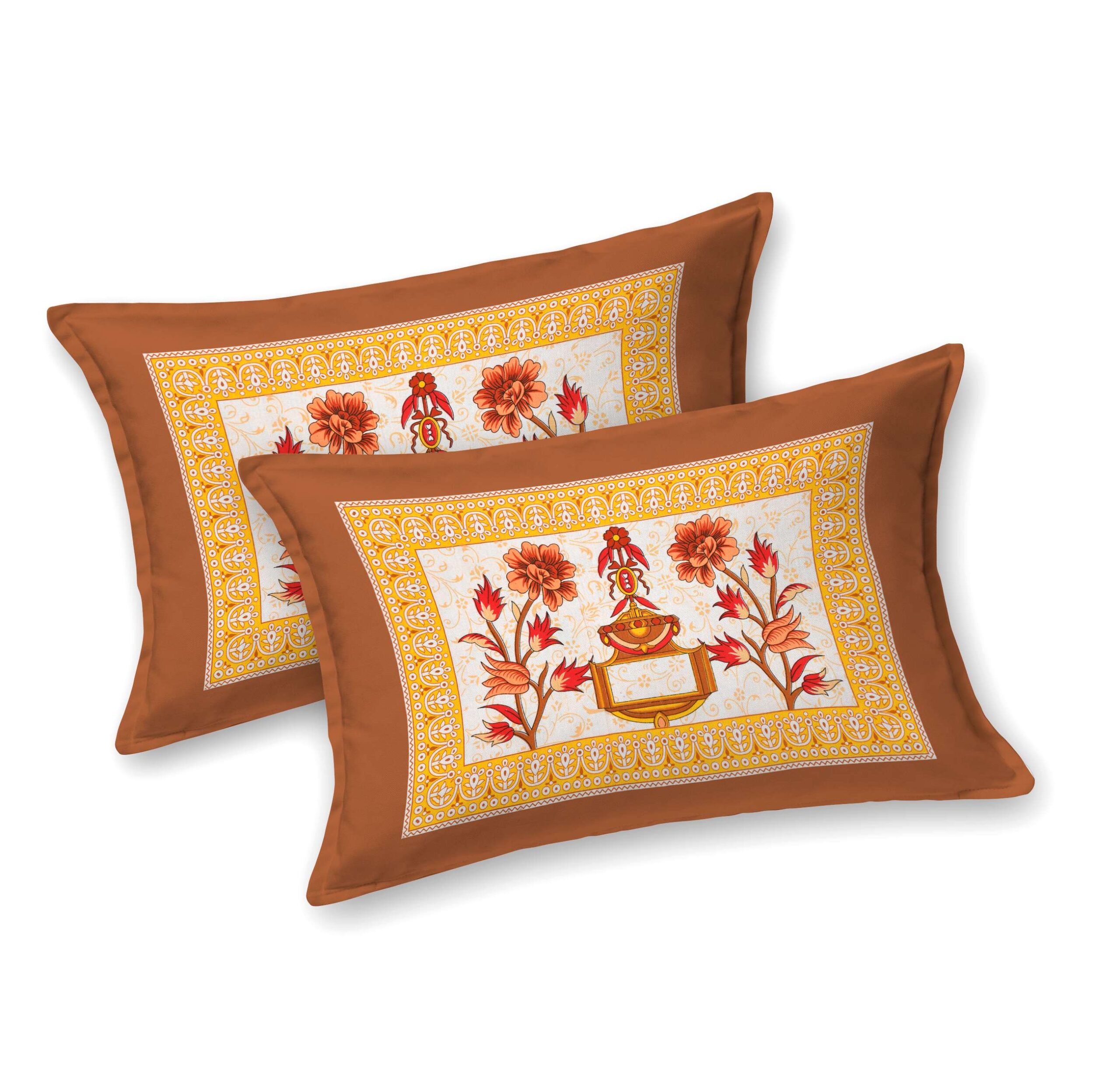 Add a royal charm to your bedroom with this Rajasthani Traditionally Printed Cotton Double Bed Bedsheet. Crafted from soft and breathable pure cotton, it features vibrant ethnic prints inspired by Rajasthan?s rich artistry. Comes with 2 matching pillow covers, ensuring comfort, elegance, and long-lasting freshness in every wash.