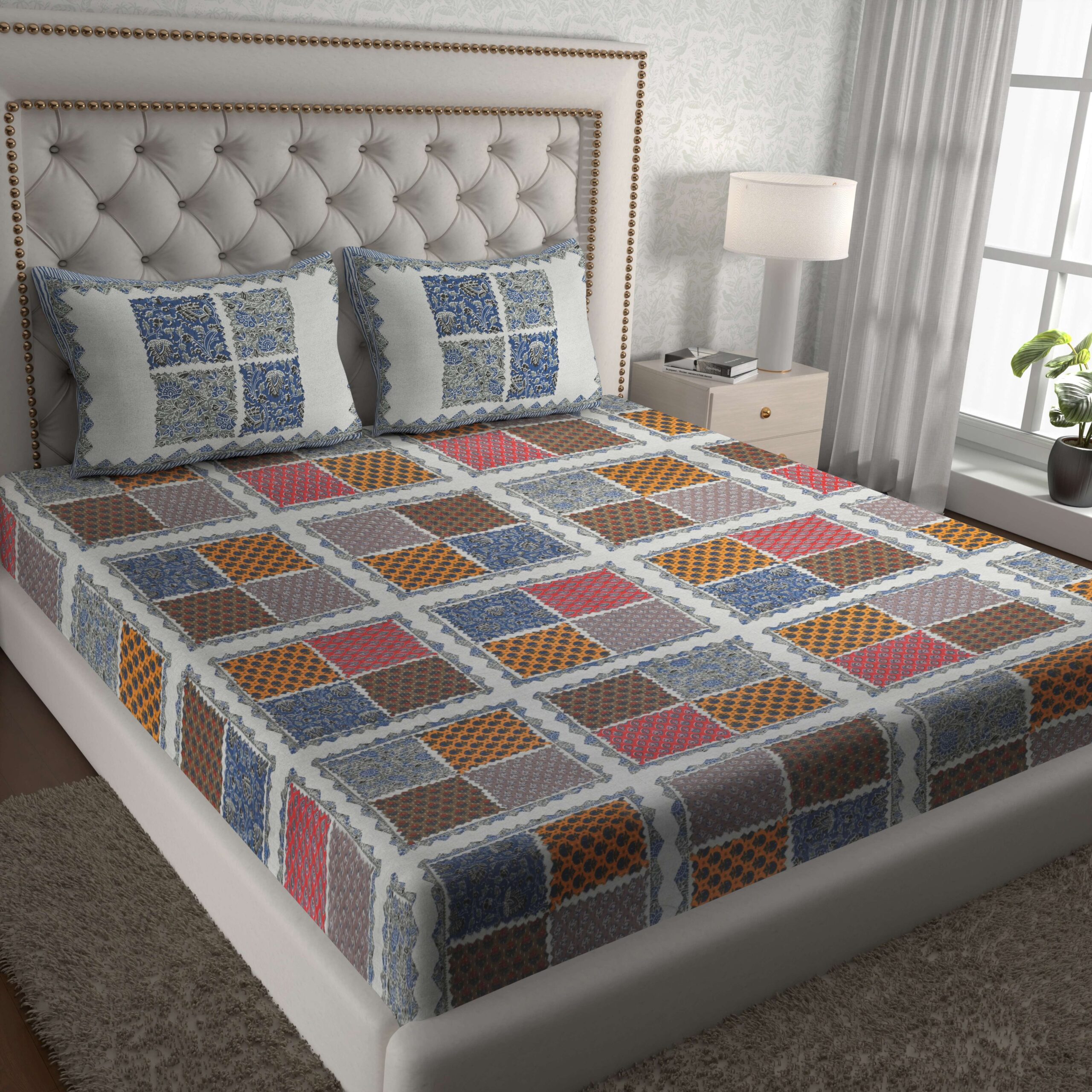 Add a royal charm to your bedroom with this Rajasthani Traditionally Printed Cotton Double Bed Bedsheet. Crafted from soft and breathable pure cotton, it features vibrant ethnic prints inspired by Rajasthan?s rich artistry. Comes with 2 matching pillow covers, ensuring comfort, elegance, and long-lasting freshness in every wash.