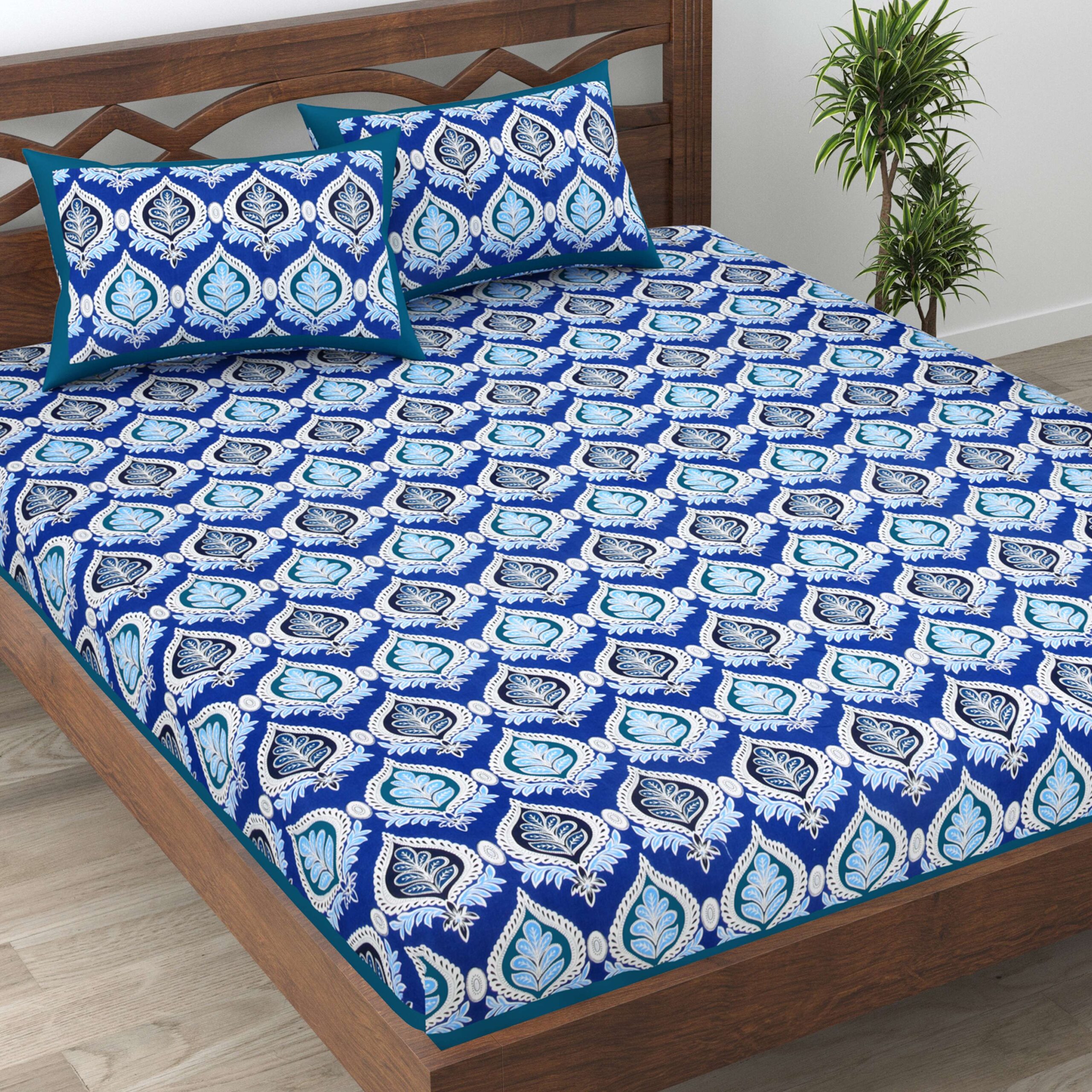 Rajasthani Traditionally Printed Cotton Doublebed Bedsheet With Pack of 2 Pillow Covers