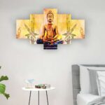 Buddha Set of Five 3D Framed Paintings for Wall Decoration – Ideal for Home, Living Room, and Bedroom (75 x 43 CM)