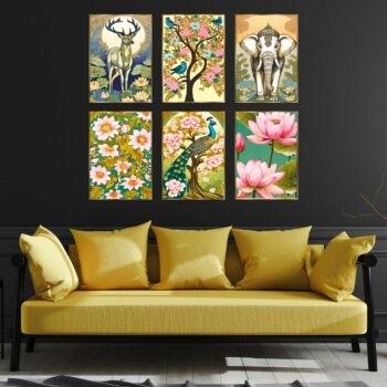 Set of Six Wall Paintings for Wall Dacoration Golden Framed Wall Paintings for Living Room & Bedroom Wall Art for Home Decoration & Office Wall Décor (17x13 inch CH-GD6-1)