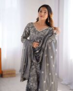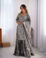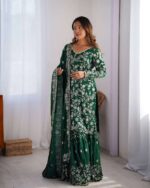 Be the first to review “Women’s Chinon Silk Embroidery Sequence Work Straight Kurti With Sharara Suit and Dupatta Set” Cancel reply