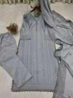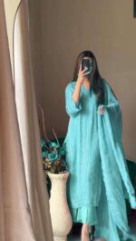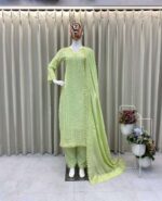 Be the first to review “Women’s Chinon Silk with Cotton Thread Embroidery Straight Kurti With Pant and Dupatta set” Cancel reply