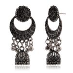 Women's Traditional Silver AZ838-OXidised Chandbali Ethnic Design Jhumka/Jhumki Earrings for Women