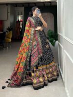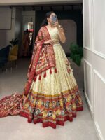 Women’s Tussar Silk Patola Print Lehenga Choli Dupatta Set