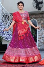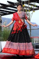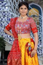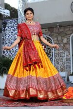 Women’s Tussar Silk Patola Print Lehenga Choli Dupatta Set