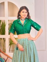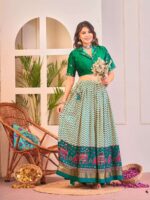 Women’s Luxurious Tussar Silk Lehenga Choli with Intricate Prints & Can-Can Flair
