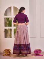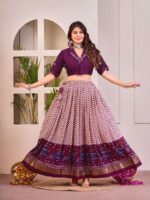 Be the first to review “Women’s Tussar Silk Patola Print Lehenga Choli Set with Foil Work” Cancel reply
