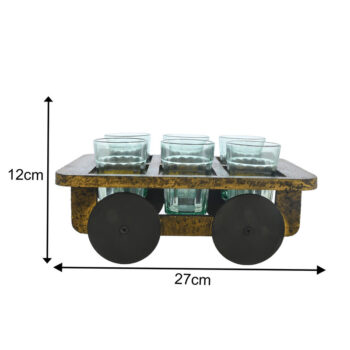 Black & Golden Hand-Painted Aluminium Tea Kettle Set with 4 Glasses & Wooden Kart | Decorative Serveware