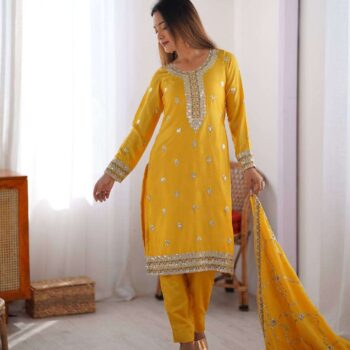 Women’s Chinon Silk Embroidery Straight Pakistani Salwar Suit and Dupatta