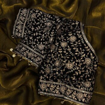 Women’s Classic Black Shimmer Saree with All-Over Sequin Embellished Blouse Piece
